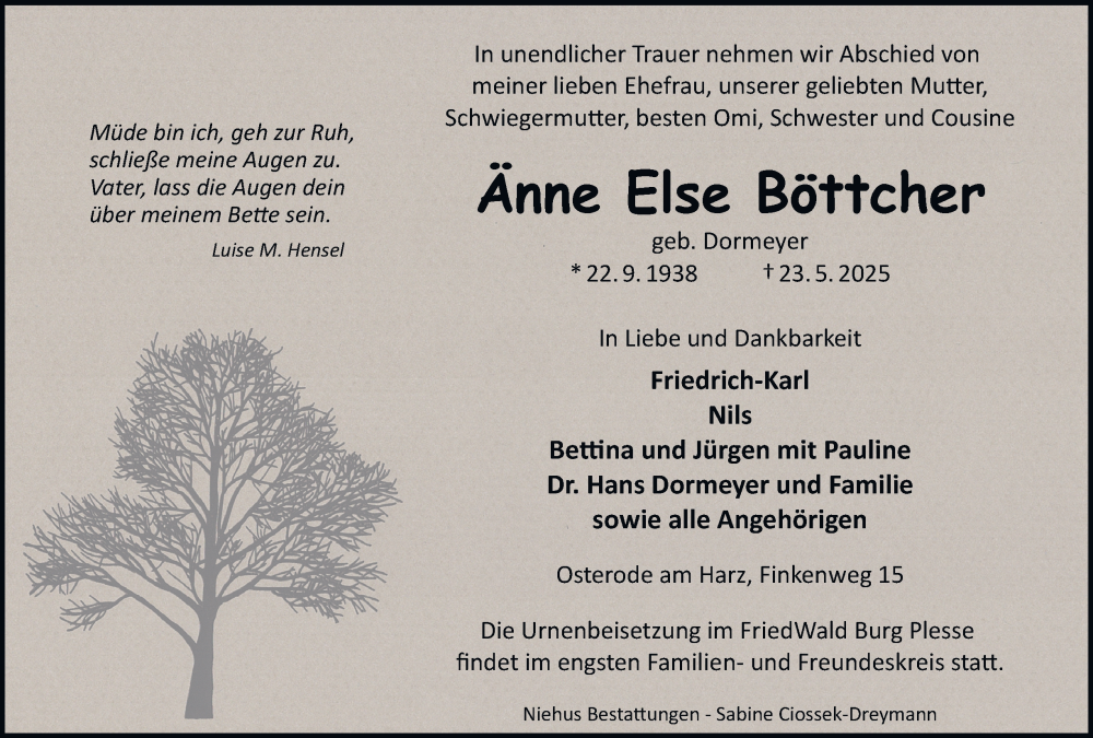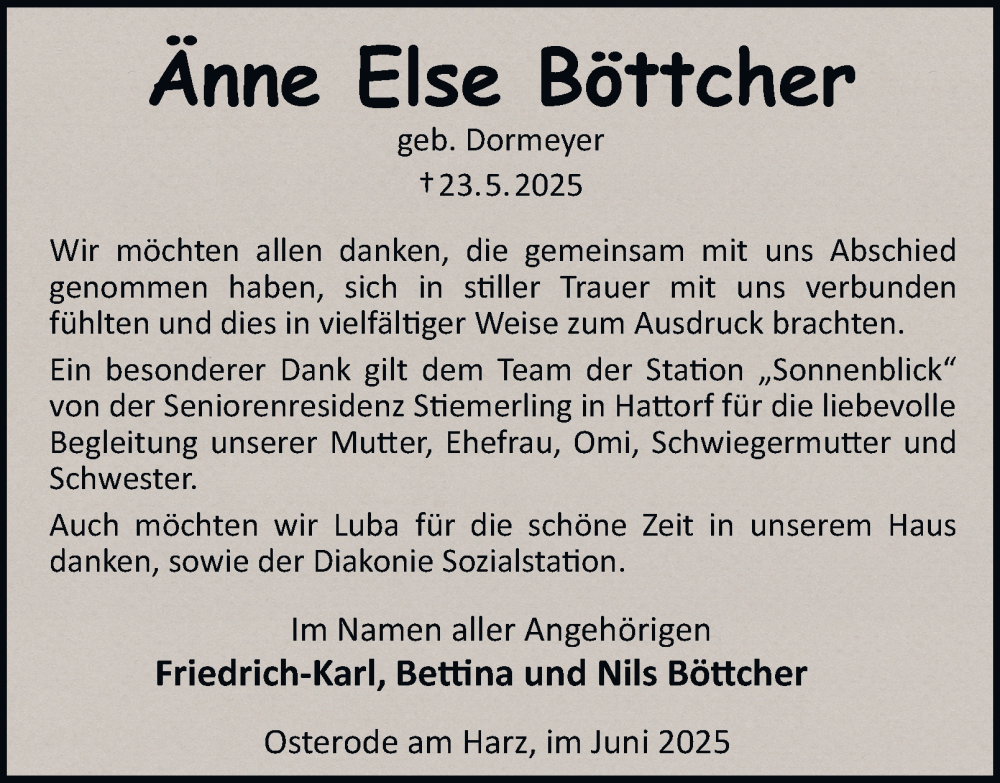 Hier finden Sie alle Traueranzeigen aus der Zeitung, die bisher für Änne Else Böttcher erschienen sind. Weitere Traueranzeigen, die in der Zeitung erscheinen, werden hier ebenfalls aufgelistet