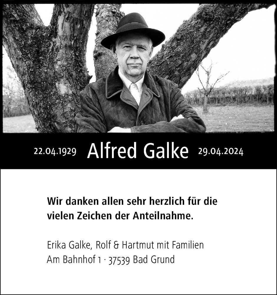 Hier finden Sie alle Traueranzeigen aus der Zeitung, die bisher für Alfred Galke erschienen sind. Weitere Traueranzeigen, die in der Zeitung erscheinen, werden hier ebenfalls aufgelistet