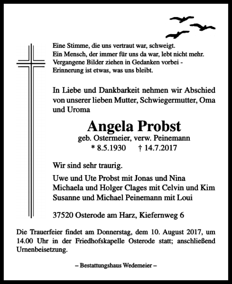 Hier finden Sie alle Traueranzeigen aus der Zeitung, die bisher für Angela Probst erschienen sind. Weitere Traueranzeigen, die in der Zeitung erscheinen, werden hier ebenfalls aufgelistet