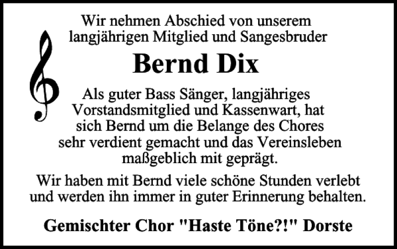 Hier finden Sie alle Traueranzeigen aus der Zeitung, die bisher für Bernd Dix erschienen sind. Weitere Traueranzeigen, die in der Zeitung erscheinen, werden hier ebenfalls aufgelistet