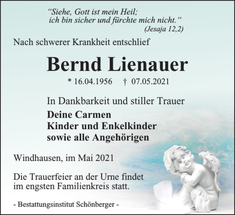 Hier finden Sie alle Traueranzeigen aus der Zeitung, die bisher für Bernd Lienauer erschienen sind. Weitere Traueranzeigen, die in der Zeitung erscheinen, werden hier ebenfalls aufgelistet