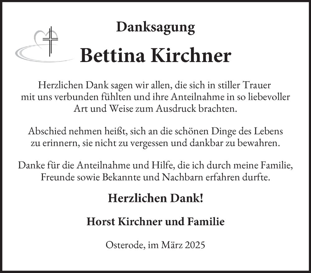 Hier finden Sie alle Traueranzeigen aus der Zeitung, die bisher für Bettina Kirchner erschienen sind. Weitere Traueranzeigen, die in der Zeitung erscheinen, werden hier ebenfalls aufgelistet