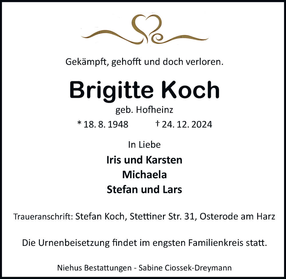 Hier finden Sie alle Traueranzeigen aus der Zeitung, die bisher für Brigitte Koch erschienen sind. Weitere Traueranzeigen, die in der Zeitung erscheinen, werden hier ebenfalls aufgelistet