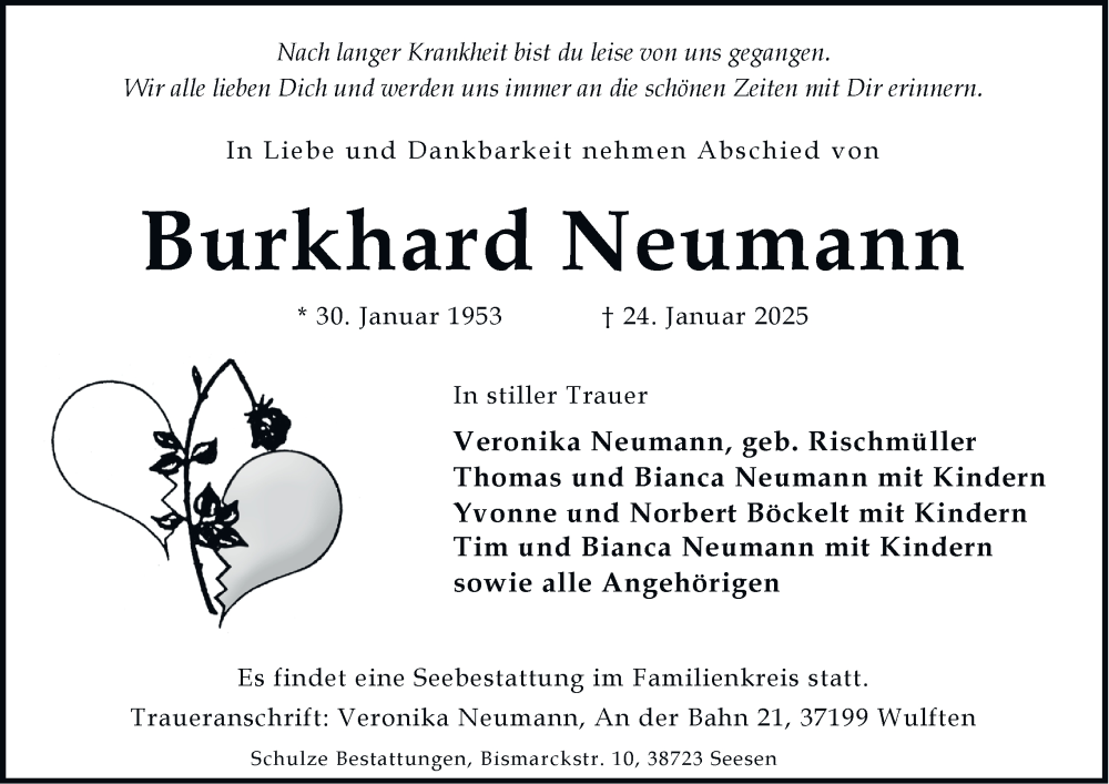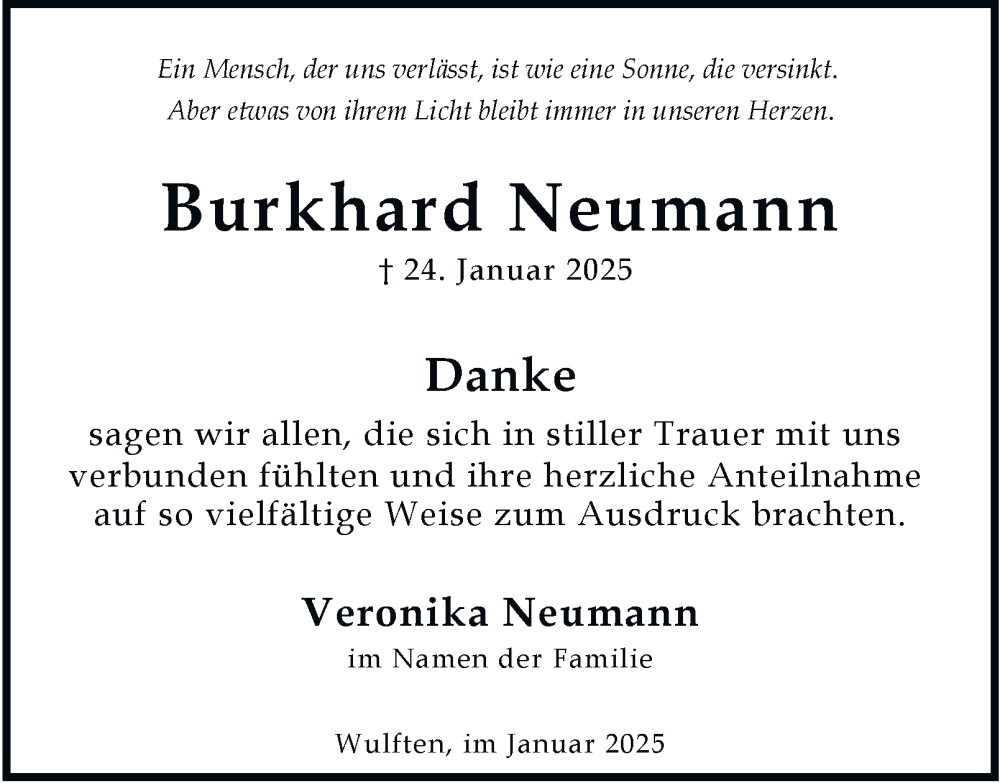 Hier finden Sie alle Traueranzeigen aus der Zeitung, die bisher für Burkhard Neumann erschienen sind. Weitere Traueranzeigen, die in der Zeitung erscheinen, werden hier ebenfalls aufgelistet