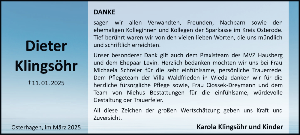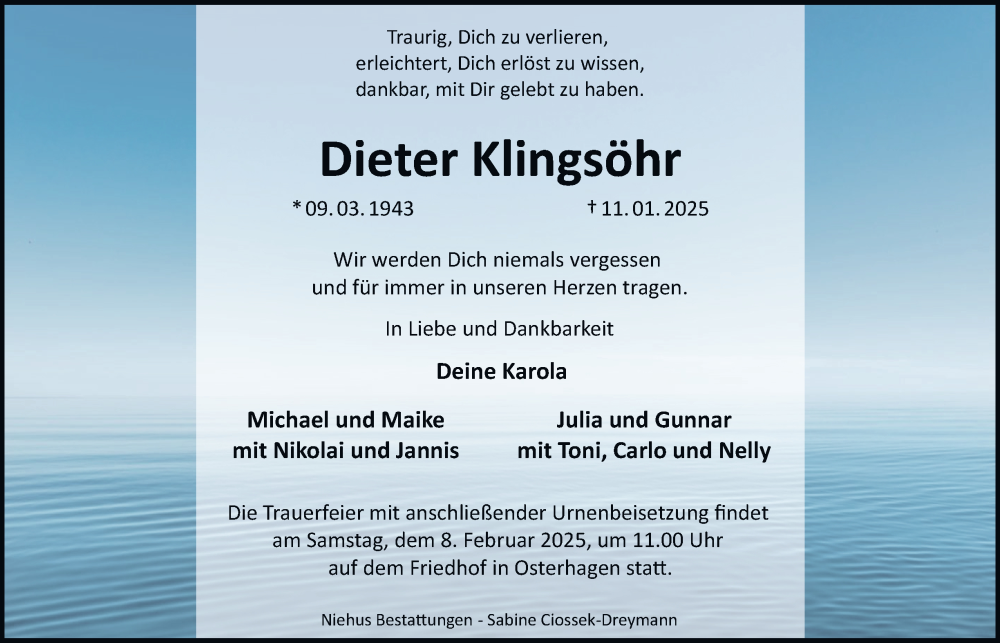 Hier finden Sie alle Traueranzeigen aus der Zeitung, die bisher für Dieter Klingsöhr erschienen sind. Weitere Traueranzeigen, die in der Zeitung erscheinen, werden hier ebenfalls aufgelistet