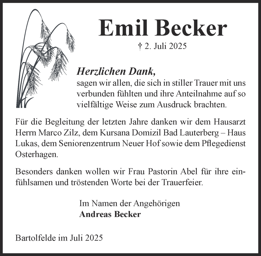 Hier finden Sie alle Traueranzeigen aus der Zeitung, die bisher für Emil Becker erschienen sind. Weitere Traueranzeigen, die in der Zeitung erscheinen, werden hier ebenfalls aufgelistet