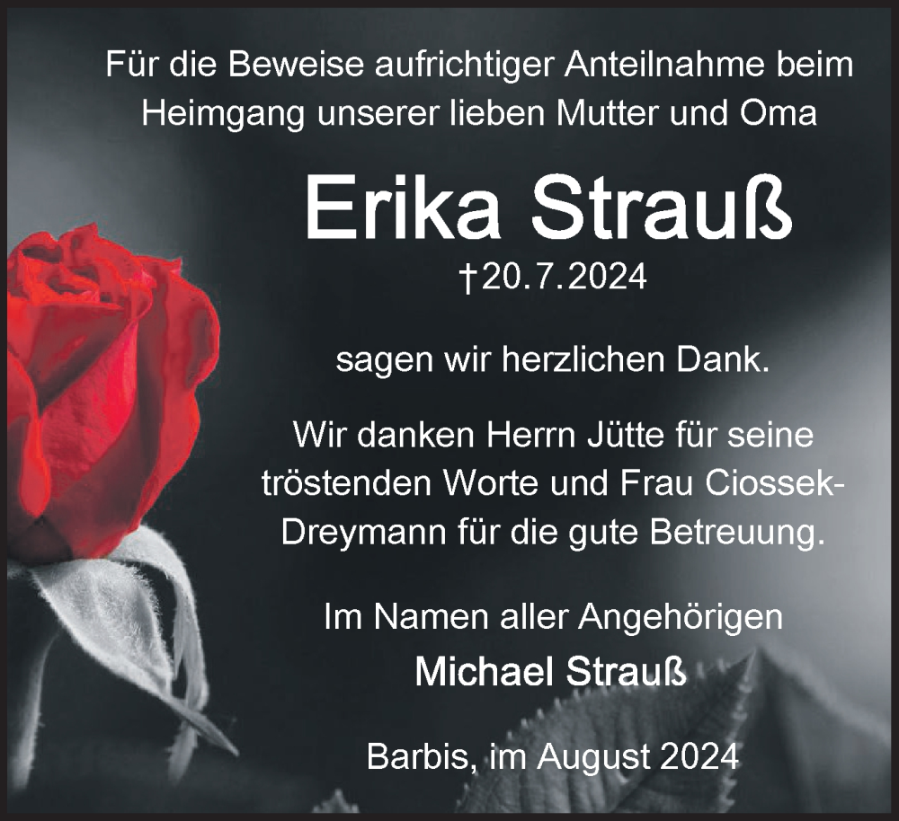 Hier finden Sie alle Traueranzeigen aus der Zeitung, die bisher für Erika Strauß erschienen sind. Weitere Traueranzeigen, die in der Zeitung erscheinen, werden hier ebenfalls aufgelistet