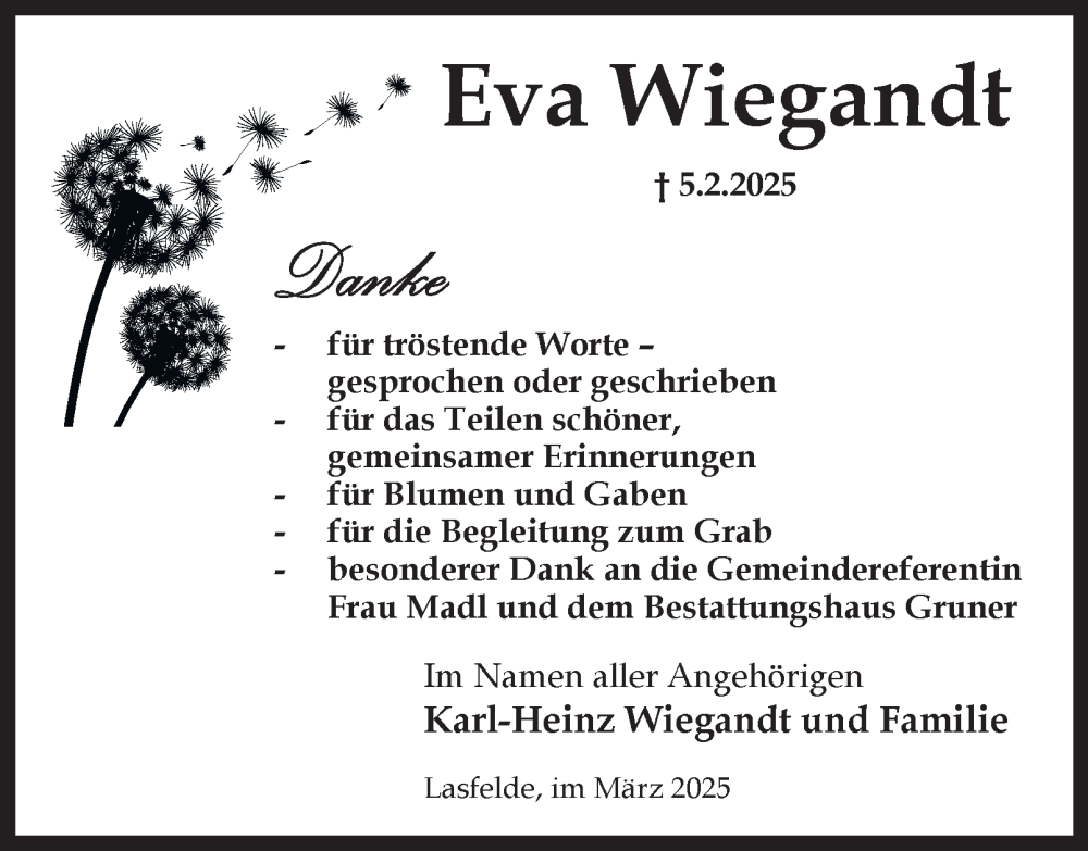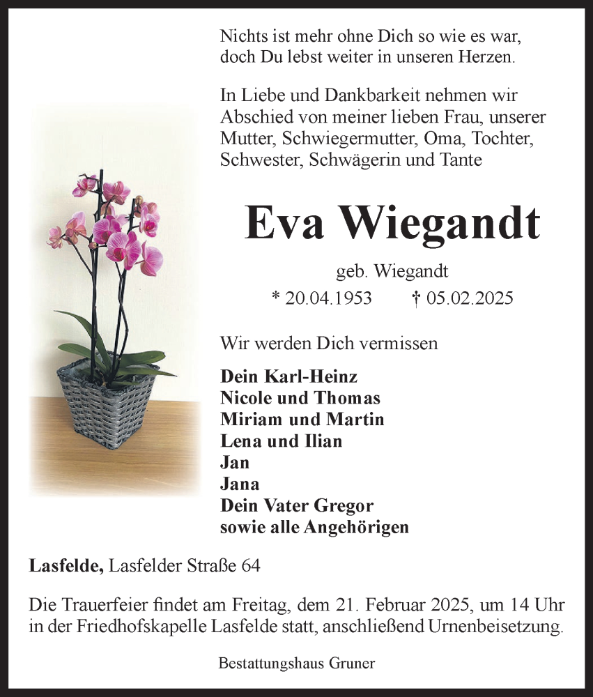 Hier finden Sie alle Traueranzeigen aus der Zeitung, die bisher für Eva Wiegandt erschienen sind. Weitere Traueranzeigen, die in der Zeitung erscheinen, werden hier ebenfalls aufgelistet