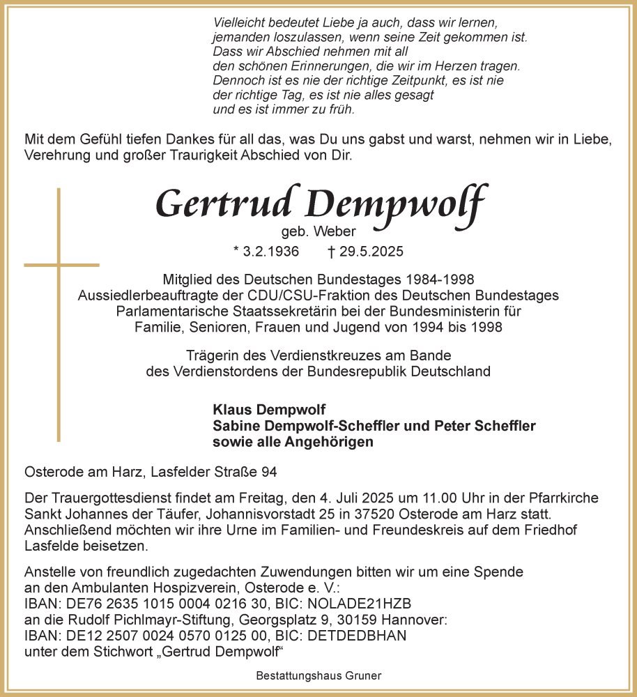 Hier finden Sie alle Traueranzeigen aus der Zeitung, die bisher für Gertrud Dempwolf erschienen sind. Weitere Traueranzeigen, die in der Zeitung erscheinen, werden hier ebenfalls aufgelistet