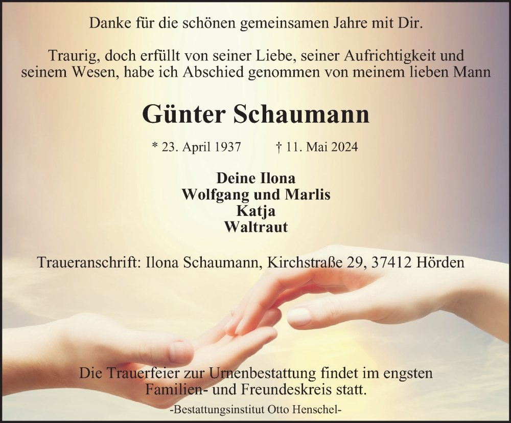 Hier finden Sie alle Traueranzeigen aus der Zeitung, die bisher für Günter Schaumann erschienen sind. Weitere Traueranzeigen, die in der Zeitung erscheinen, werden hier ebenfalls aufgelistet