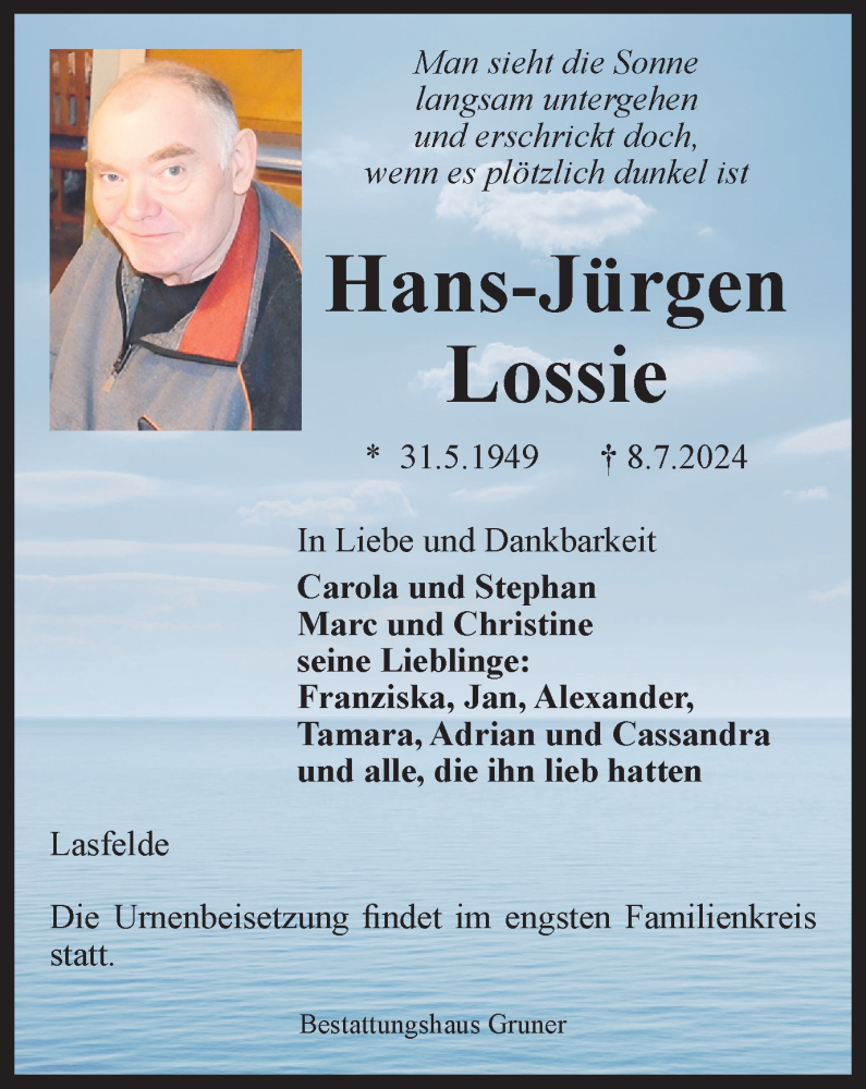 Hier finden Sie alle Traueranzeigen aus der Zeitung, die bisher für Hans-Jürgen Lossie erschienen sind. Weitere Traueranzeigen, die in der Zeitung erscheinen, werden hier ebenfalls aufgelistet