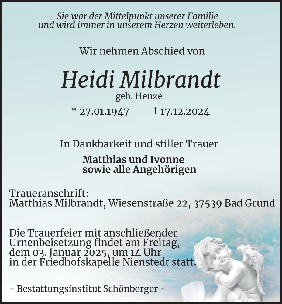 Hier finden Sie alle Traueranzeigen aus der Zeitung, die bisher für Heidi Milbrandt erschienen sind. Weitere Traueranzeigen, die in der Zeitung erscheinen, werden hier ebenfalls aufgelistet