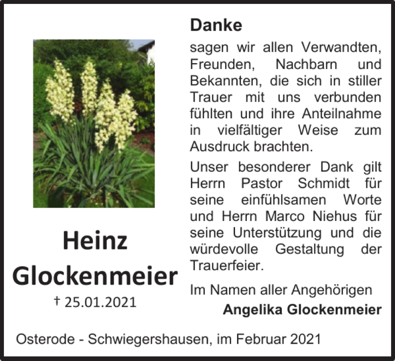 Hier finden Sie alle Traueranzeigen aus der Zeitung, die bisher für Heinz Glockenmeier erschienen sind. Weitere Traueranzeigen, die in der Zeitung erscheinen, werden hier ebenfalls aufgelistet