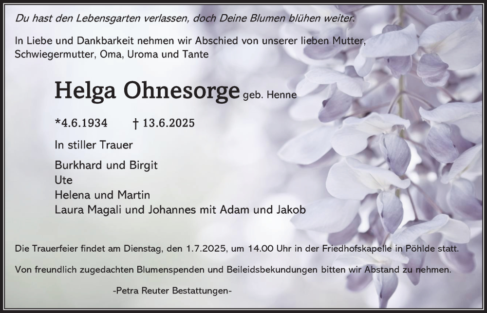 Hier finden Sie alle Traueranzeigen aus der Zeitung, die bisher für Helga Ohnesorge erschienen sind. Weitere Traueranzeigen, die in der Zeitung erscheinen, werden hier ebenfalls aufgelistet