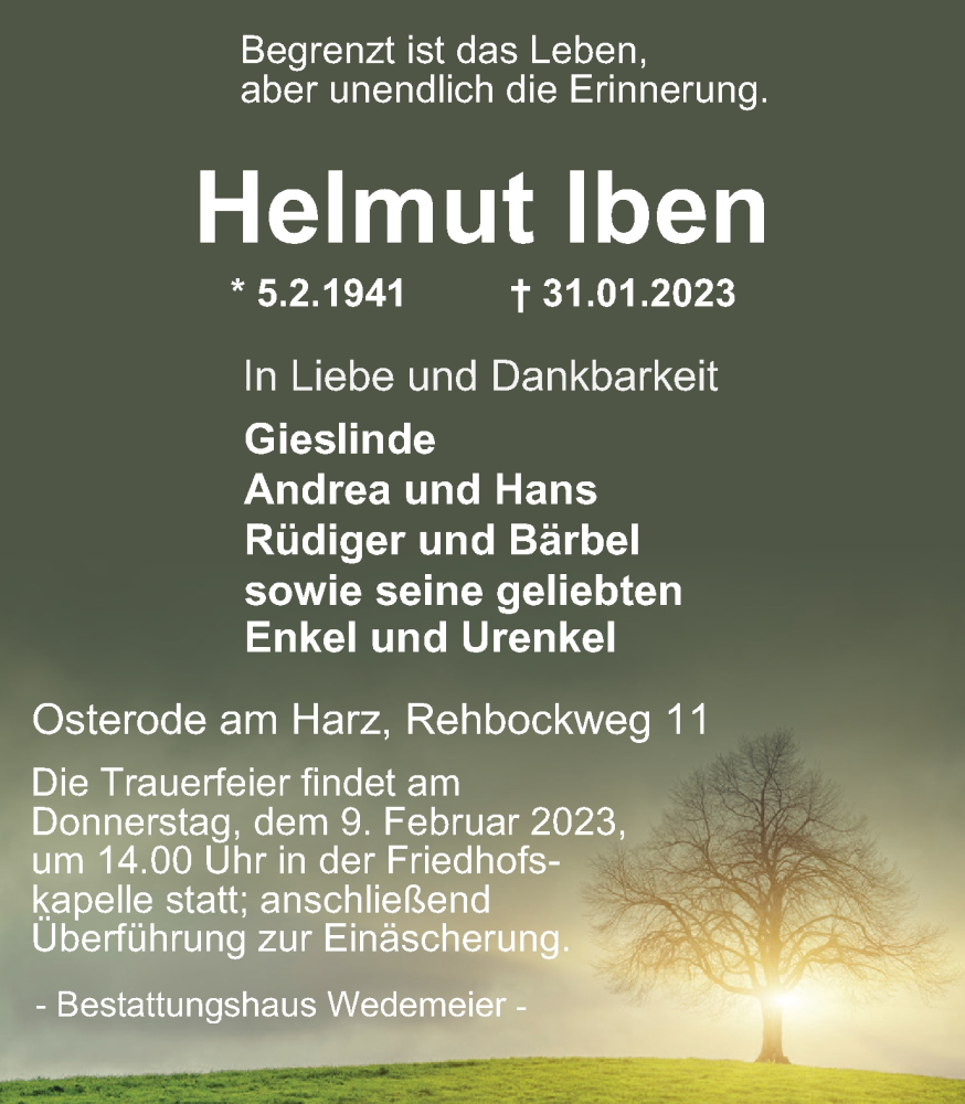 Hier finden Sie alle Traueranzeigen aus der Zeitung, die bisher für Helmut Iben erschienen sind. Weitere Traueranzeigen, die in der Zeitung erscheinen, werden hier ebenfalls aufgelistet