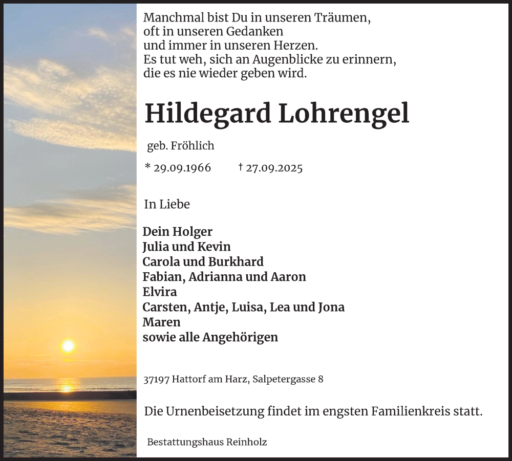 Hier finden Sie alle Traueranzeigen aus der Zeitung, die bisher für Hildegard Lohrengel erschienen sind. Weitere Traueranzeigen, die in der Zeitung erscheinen, werden hier ebenfalls aufgelistet