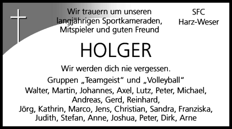 Hier finden Sie alle Traueranzeigen aus der Zeitung, die bisher für HOLGER erschienen sind. Weitere Traueranzeigen, die in der Zeitung erscheinen, werden hier ebenfalls aufgelistet