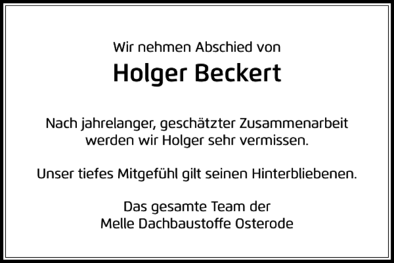 Hier finden Sie alle Traueranzeigen aus der Zeitung, die bisher für Holger Beckert erschienen sind. Weitere Traueranzeigen, die in der Zeitung erscheinen, werden hier ebenfalls aufgelistet