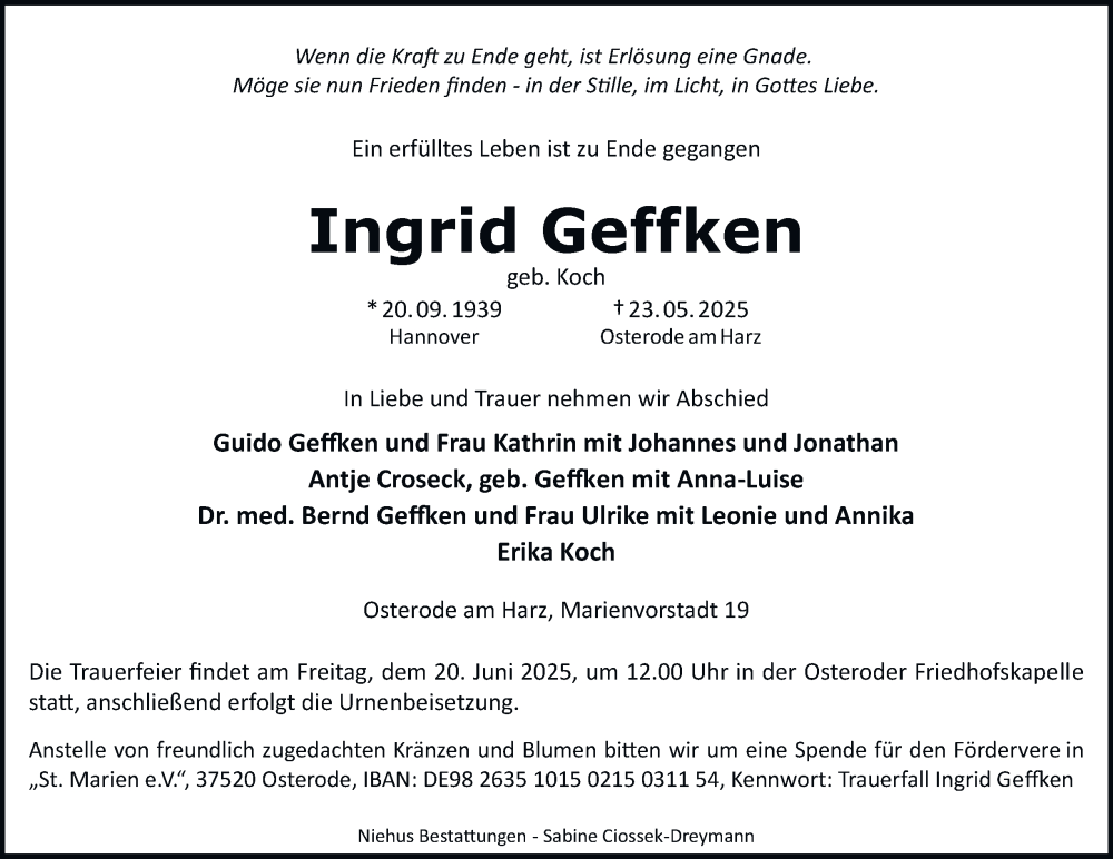 Hier finden Sie alle Traueranzeigen aus der Zeitung, die bisher für Ingrid Geffken erschienen sind. Weitere Traueranzeigen, die in der Zeitung erscheinen, werden hier ebenfalls aufgelistet