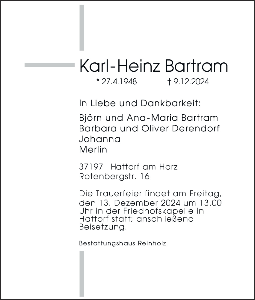 Hier finden Sie alle Traueranzeigen aus der Zeitung, die bisher für Karl-Heinz Bartram erschienen sind. Weitere Traueranzeigen, die in der Zeitung erscheinen, werden hier ebenfalls aufgelistet