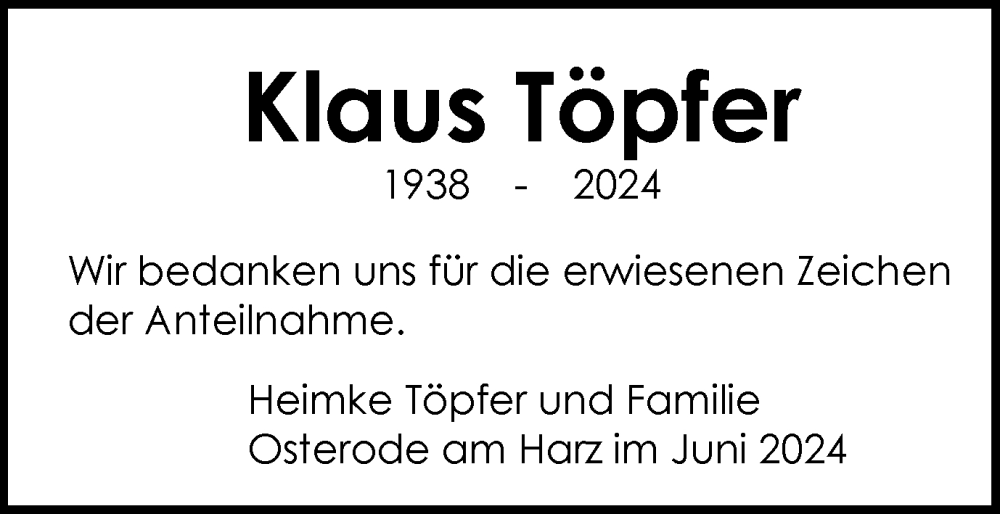 Hier finden Sie alle Traueranzeigen aus der Zeitung, die bisher für Klaus Töpfer erschienen sind. Weitere Traueranzeigen, die in der Zeitung erscheinen, werden hier ebenfalls aufgelistet