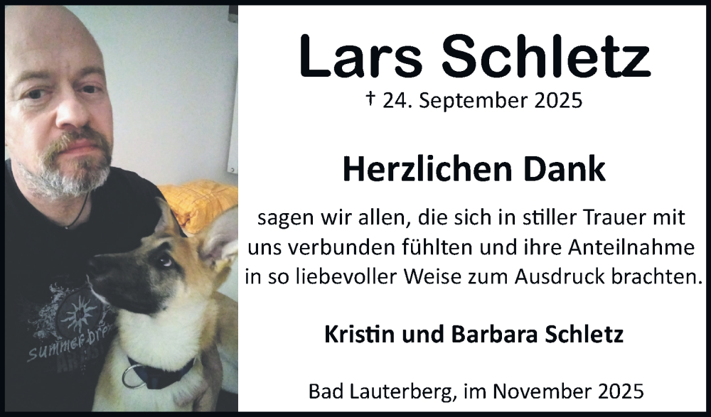Hier finden Sie alle Traueranzeigen aus der Zeitung, die bisher für Lars Schletz erschienen sind. Weitere Traueranzeigen, die in der Zeitung erscheinen, werden hier ebenfalls aufgelistet