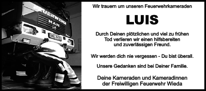 Hier finden Sie alle Traueranzeigen aus der Zeitung, die bisher für LUIS erschienen sind. Weitere Traueranzeigen, die in der Zeitung erscheinen, werden hier ebenfalls aufgelistet