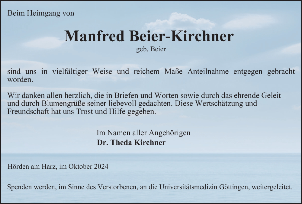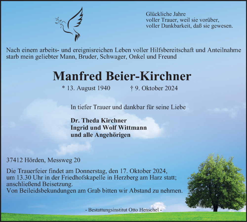 Hier finden Sie alle Traueranzeigen aus der Zeitung, die bisher für Manfred Beier-Kirchner erschienen sind. Weitere Traueranzeigen, die in der Zeitung erscheinen, werden hier ebenfalls aufgelistet