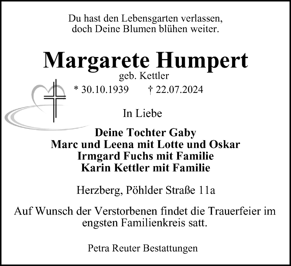 Hier finden Sie alle Traueranzeigen aus der Zeitung, die bisher für Margarete Humpert erschienen sind. Weitere Traueranzeigen, die in der Zeitung erscheinen, werden hier ebenfalls aufgelistet