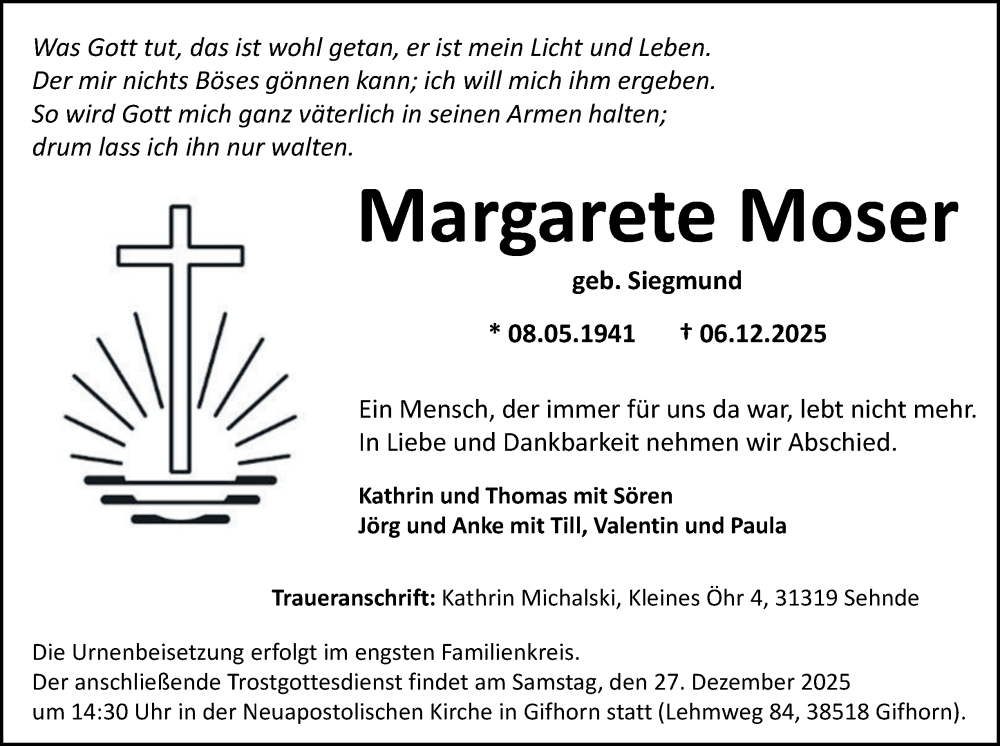 Hier finden Sie alle Traueranzeigen aus der Zeitung, die bisher für Margarete Moser erschienen sind. Weitere Traueranzeigen, die in der Zeitung erscheinen, werden hier ebenfalls aufgelistet