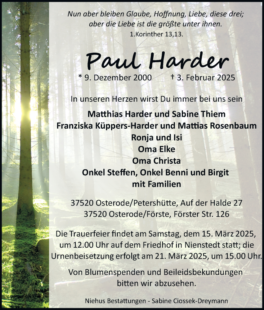 Hier finden Sie alle Traueranzeigen aus der Zeitung, die bisher für Paul Harder erschienen sind. Weitere Traueranzeigen, die in der Zeitung erscheinen, werden hier ebenfalls aufgelistet