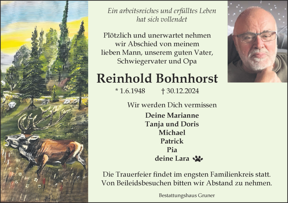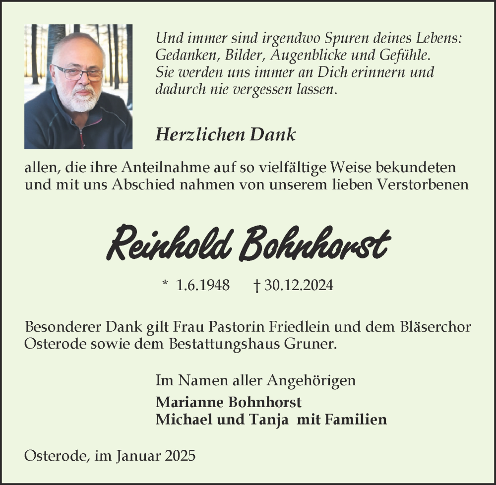 Hier finden Sie alle Traueranzeigen aus der Zeitung, die bisher für Reinhold Bohnhorst erschienen sind. Weitere Traueranzeigen, die in der Zeitung erscheinen, werden hier ebenfalls aufgelistet