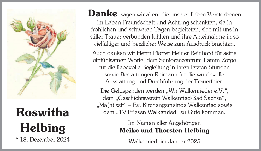 Hier finden Sie alle Traueranzeigen aus der Zeitung, die bisher für Roswitha Helbing erschienen sind. Weitere Traueranzeigen, die in der Zeitung erscheinen, werden hier ebenfalls aufgelistet
