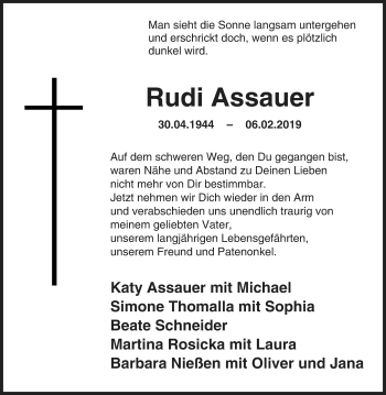 Hier finden Sie alle Traueranzeigen aus der Zeitung, die bisher für Rudi Assauer erschienen sind. Weitere Traueranzeigen, die in der Zeitung erscheinen, werden hier ebenfalls aufgelistet