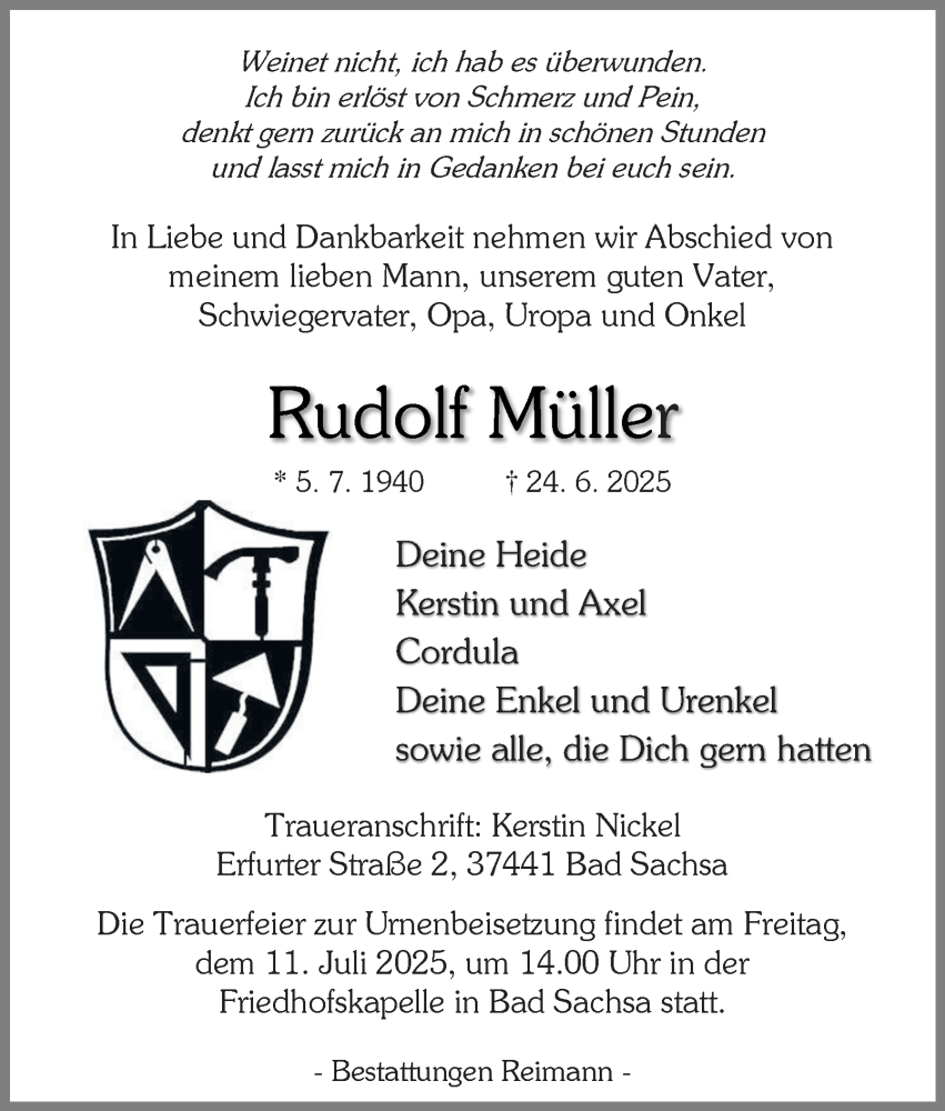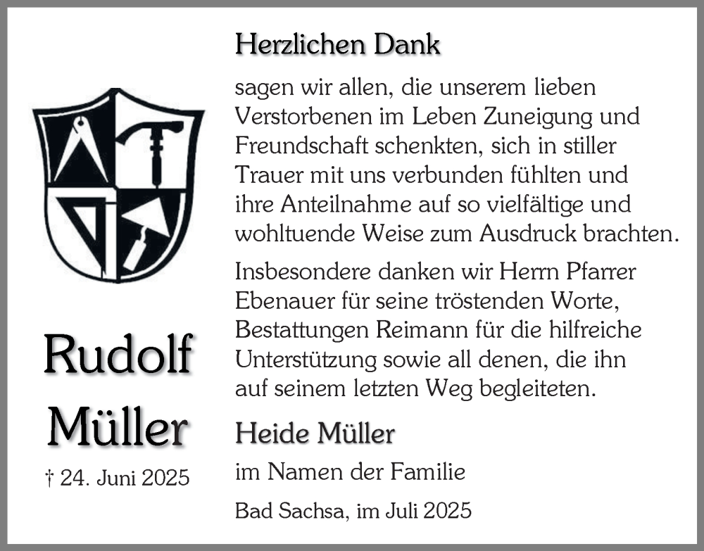 Hier finden Sie alle Traueranzeigen aus der Zeitung, die bisher für Rudolf Müller erschienen sind. Weitere Traueranzeigen, die in der Zeitung erscheinen, werden hier ebenfalls aufgelistet