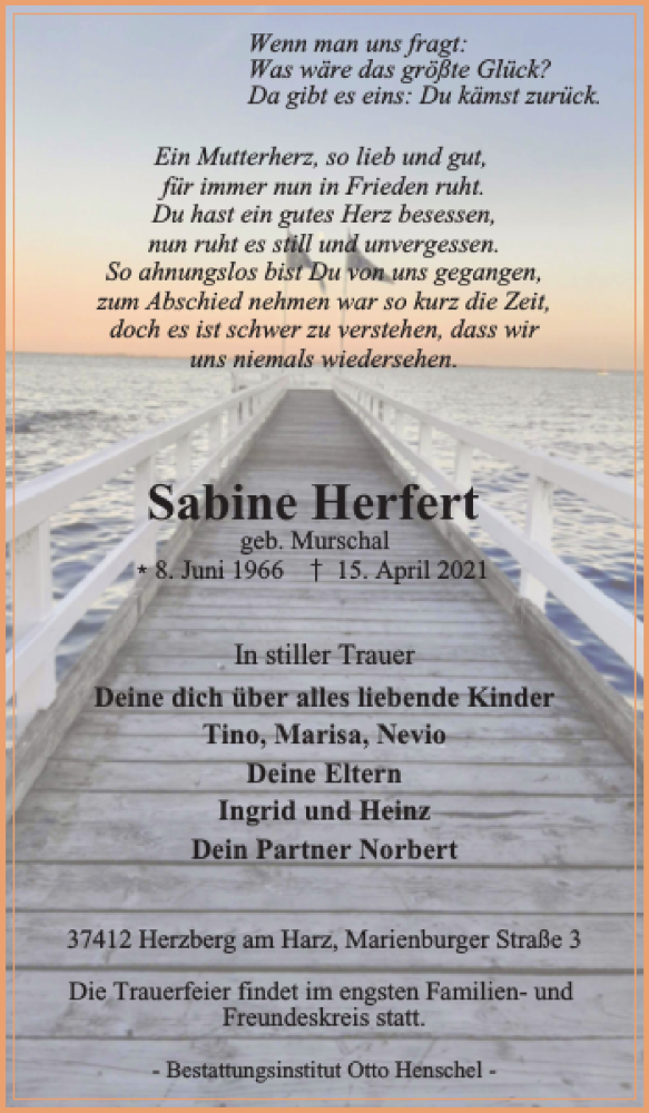 Hier finden Sie alle Traueranzeigen aus der Zeitung, die bisher für Sabine Herfert erschienen sind. Weitere Traueranzeigen, die in der Zeitung erscheinen, werden hier ebenfalls aufgelistet