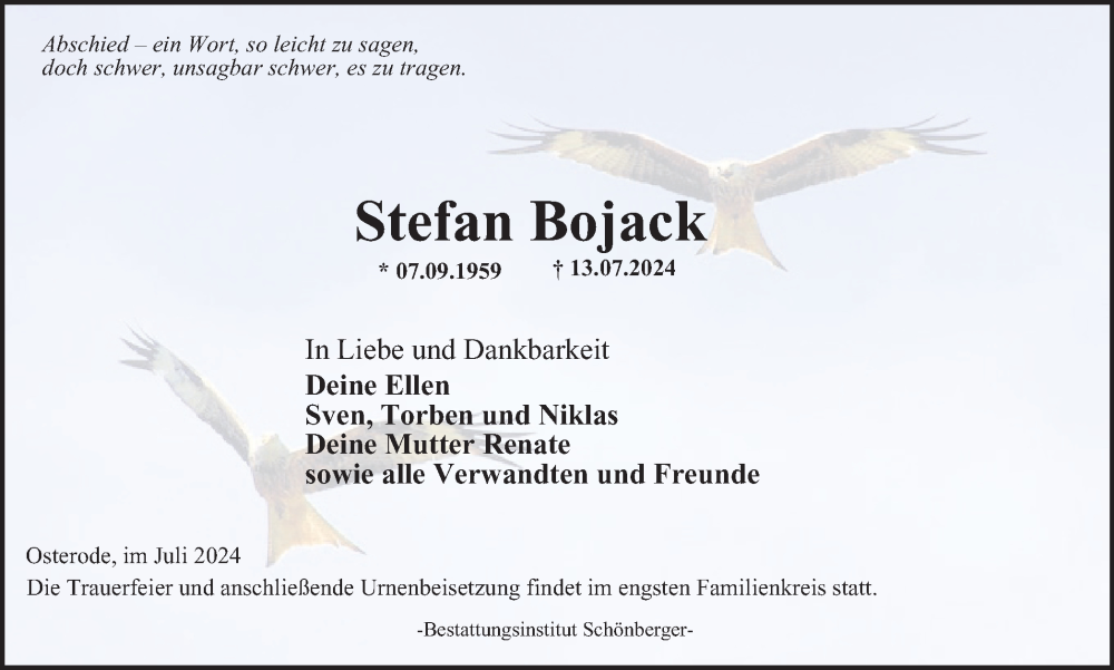 Hier finden Sie alle Traueranzeigen aus der Zeitung, die bisher für Stefan Bojack erschienen sind. Weitere Traueranzeigen, die in der Zeitung erscheinen, werden hier ebenfalls aufgelistet