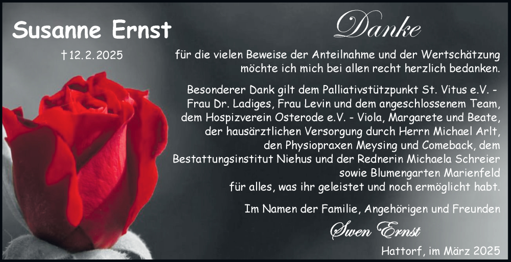 Hier finden Sie alle Traueranzeigen aus der Zeitung, die bisher für Susanne Ernst erschienen sind. Weitere Traueranzeigen, die in der Zeitung erscheinen, werden hier ebenfalls aufgelistet