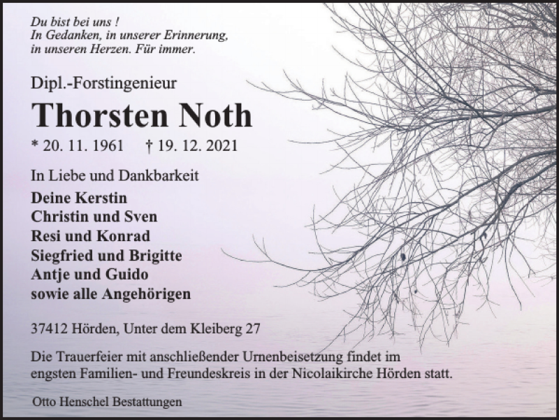 Hier finden Sie alle Traueranzeigen aus der Zeitung, die bisher für Thorsten Noth erschienen sind. Weitere Traueranzeigen, die in der Zeitung erscheinen, werden hier ebenfalls aufgelistet