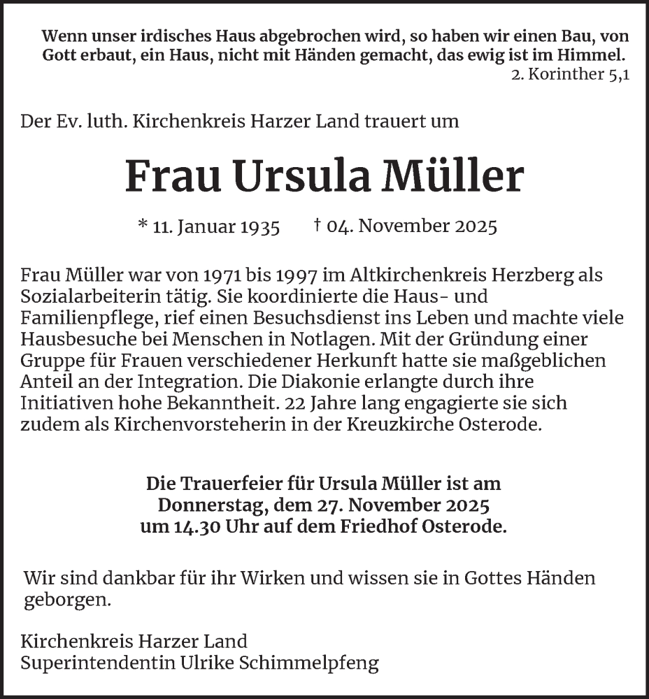 Hier finden Sie alle Traueranzeigen aus der Zeitung, die bisher für Ursula Müller erschienen sind. Weitere Traueranzeigen, die in der Zeitung erscheinen, werden hier ebenfalls aufgelistet