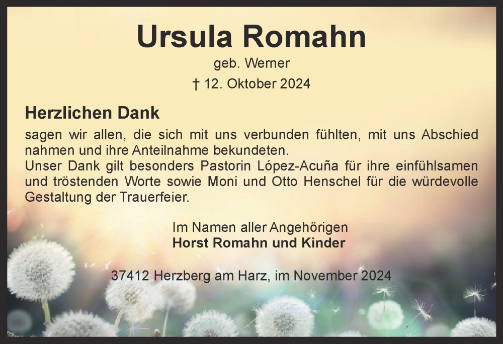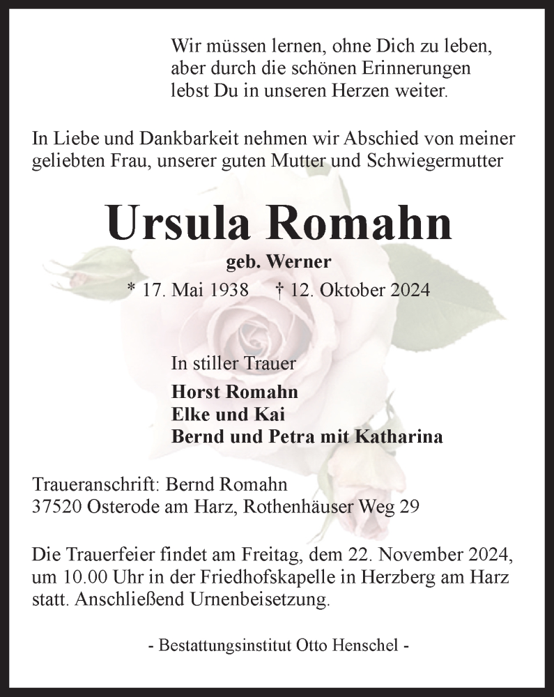 Hier finden Sie alle Traueranzeigen aus der Zeitung, die bisher für Ursula Romahn erschienen sind. Weitere Traueranzeigen, die in der Zeitung erscheinen, werden hier ebenfalls aufgelistet