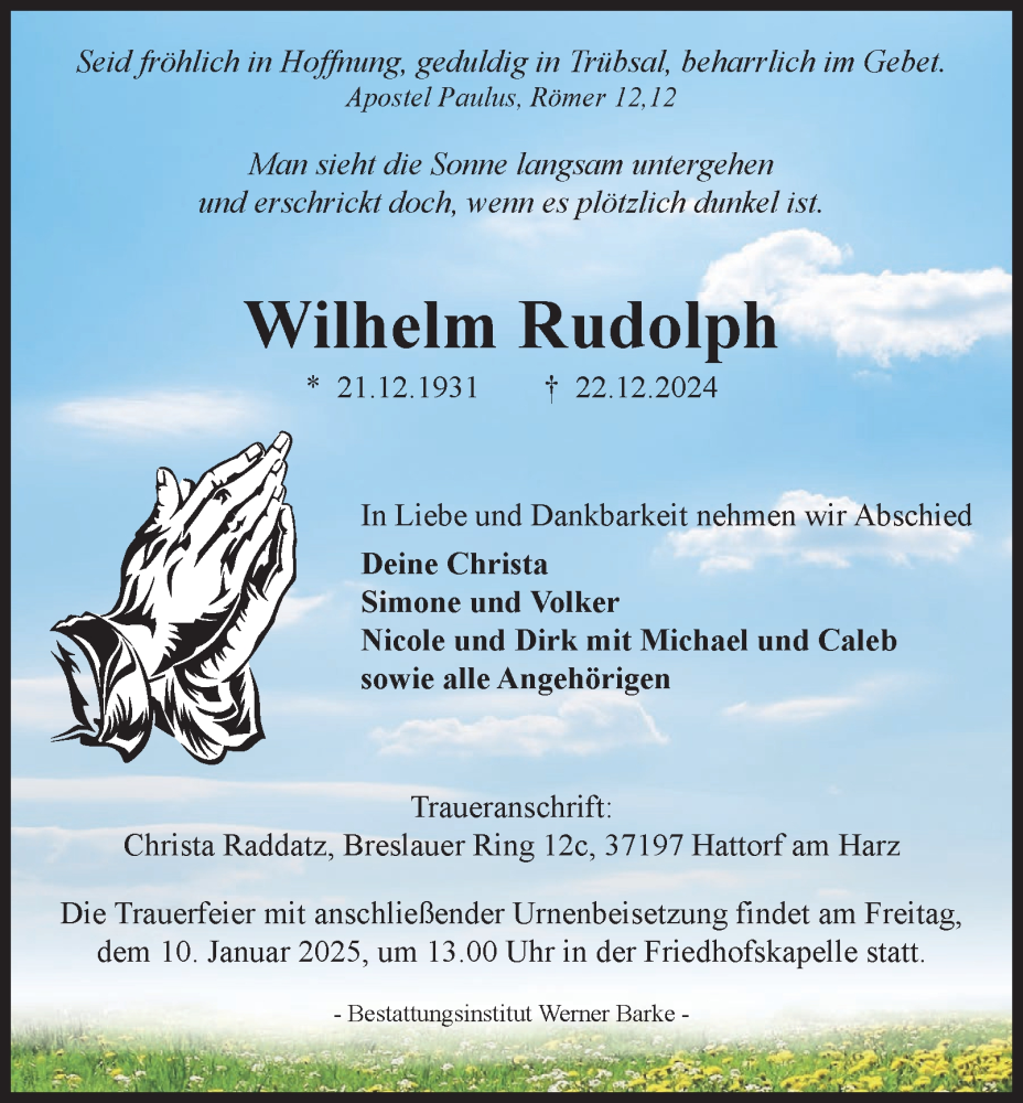 Hier finden Sie alle Traueranzeigen aus der Zeitung, die bisher für Wilhelm Rudolph erschienen sind. Weitere Traueranzeigen, die in der Zeitung erscheinen, werden hier ebenfalls aufgelistet