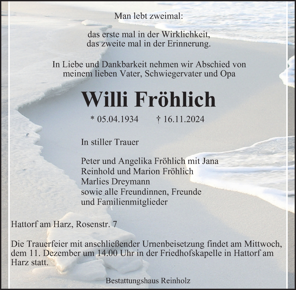 Hier finden Sie alle Traueranzeigen aus der Zeitung, die bisher für Willi Fröhlich erschienen sind. Weitere Traueranzeigen, die in der Zeitung erscheinen, werden hier ebenfalls aufgelistet