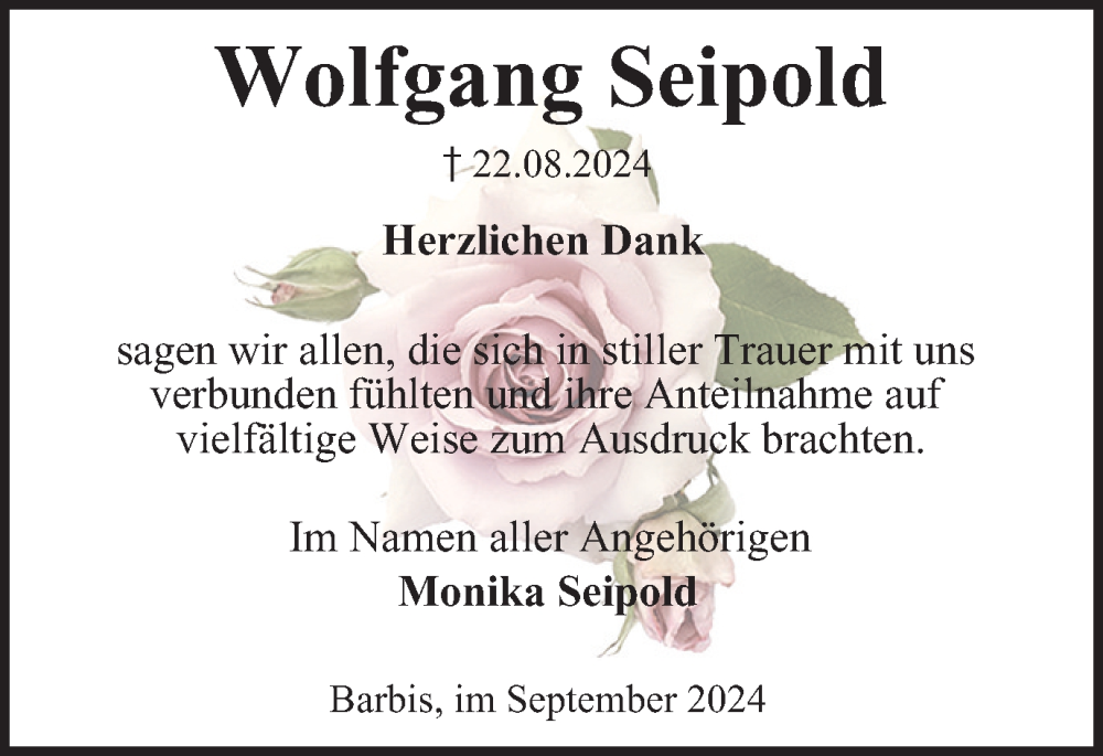 Hier finden Sie alle Traueranzeigen aus der Zeitung, die bisher für Wolfgang Seipold erschienen sind. Weitere Traueranzeigen, die in der Zeitung erscheinen, werden hier ebenfalls aufgelistet